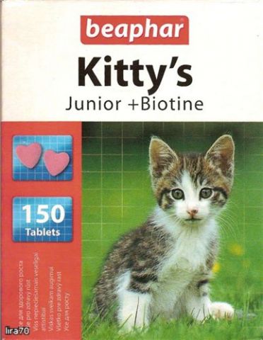 Beaphar Kittys junior содержит витамины группы В, биотин, натрий, фосфор кальций, калий и другие витамины и минералы.