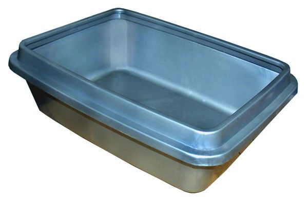 Туалет с бортиком, препятствующим рассыпанию наполнителя, для кошек.
