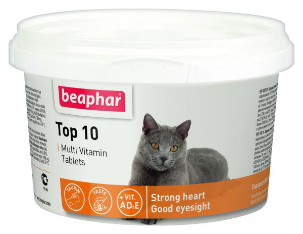 Витамины для кошек Beaphar Top 10 (Топ 10) - это прекрасная мультивитаминная добавка с биотином и таурином для кошек. Beaphar Top 10 для кршек содержат дневную норму всех жизненно важных витаминов, минералов и микроэлементов, которые обеспечивают жизненную силу вашей кошки и укрепляют ее физическое состояние. Таурин улучшает зрение, а биотин улучшает состояние кожи и шерсти.