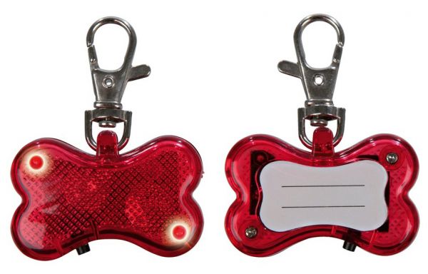 Светящийся брелок (маячок) на ошейнике собаки позволяет видеть собаку в темное время суток, что позволяет обезопасить животное от потери и автомобиля. Брелок имеет светоотражающую поверхность, а также два красных светодиода.