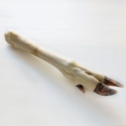 Высушенная кальцинированная голень сарны - это превосходный источник гипоаллергенного белка, витаминов и минералов. Благодаря низкому содержанию жира не имеет противопоказаний. Высокое содержание хрящевой и соединительной ткани обеспечивают дополнительное поступление в организм составных элементов для роста, развития и поддержания в норме суставов собак. Массирует десна и очищает зубы от налета, сохраняя здоровье ротовой полости животных.