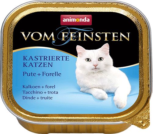 Вом Фейнштен корм консерва для кастрированных стерилизованных кошек и котов индейка и форель 100гр, Анимонда