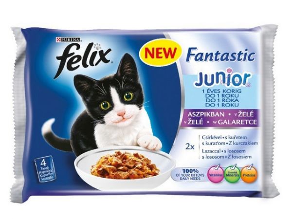 Felix Fantastic JUNIOR (Феликс Фантастик юниор) корм консервы для котят кусочки с курицей в желе пауч