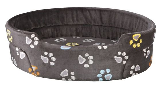 Мягкий и удобный лежак для собак. Покрытие - мягкий плюш. Наполнение - пеноматериал. Съемная подушка. На дне покрытие из нескользящего нейлона. Цвет- серый в разноцветную лапку.