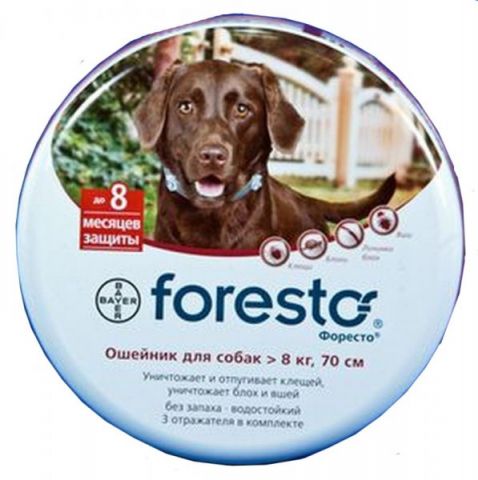 Форесто®ошейник предназначен для уничтожения блох, вшей, власоедов и иксодовых клещей, паразитирующих на собаках и кошках, а также для защиты животных от их нападения.