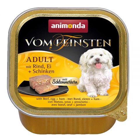Animonda Vom Feinsten - полнорационный влажный корм с говядиной, яйцом и ветчиной для взрослых собак всех пород. Подходит для собак с чувствительным пищеварением и непереносимостью мяса домашней птицы.