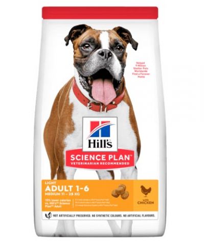 Hill's Science Plan Light Medium - полноценный сбалансированный корм для взрослых собак средних пород, которые имеют лишний вес. Специальный состав корма с пониженным содержанием калорий помогает контролировать вес и способствует поддержанию оптимального веса средних собак. Подходит для малоподвижных и пожилых животных.