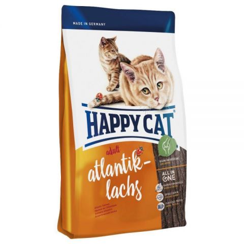 Happy Cat Atlantik Lachs Корм для взрослых кошек с атлантическим лососем Полнорационный корм для взрослых кошек от 12 месяцев. Happy Cat Adult Atlantic Salmon Атлантический лосось содержит легкоусвояемые белки из мяса лосося и птицы, не создающие нагрузки для обмена веществ и пищеваренья (доля белков животного происхождения не менее 85,0%). идеально соответствует потребностям длинношерстных и короткошерстных пород