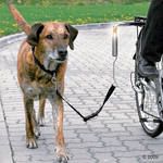 Отлично подойдет устройство под названием Biker-Set de Luxe, выпускаемое немецкой компанией TRIXIE. Оно крепится под седлом и представляет собой трубу длиной примерно 50 сантиметров и пружинящий поводок, цепляемый к ошейнику собаки. С помощью Biker-Set можно без особых проблем выгуливать даже двух собак - устойчивость велосипеда при использовании устройства возрастает в несколько раз.