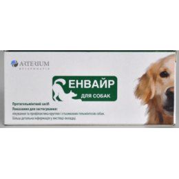 | «Энвайр для собак™»  В 2007 году на базе Государственного Научно-исследовательского Контрольного института ветеринарных препаратов и кормовых добавок был испытан и рекомендован к применению отечественный антигельминтик «Энвайр для собак™» и «Энвайр для котов™» производства корпорации «Артериум».  Клинические испытания проходили в условиях строжайшего контроля эффективности и безопасности препарата. Исследовались все возрастные группы собак и кошек, в том числе молодняк. Подтверждена 96,2 – 100% эффективность препарата «Энвайр для собак™» при лечении круглых и ленточных гельминтов при однократном применении. «Энвайр для котов ™» проявил 100% эффективность при лечении смешанных гельминтозов котов при двукратном применении препарата с интервалом 14 дней.  Такой эффект достигается тем, что компоненты, входящие в состав «Энвайр™» взаимно усиливают действие друг друга (выражаясь научным языком, проявляют синергизм) и позволяют максимально расширить спектр антигельминтной активности препарата. Это дает возможность снизить дозировку каждого компонента в рецептуре препарата, что делает препарат исключительно безопасным. Учтены и видовые особенности домашних животных. В состав «Энвайра для собак™» входят три компонента: пирантел, празиквантел, фебантел. Кошки же более нежные создания, они очень чувствительны к производным фенола, поэтому «Энвайр для котов™» не содержит фебантела. При правильной дозировке препарата ни у собак, ни у кошек не наблюдается осложнений или побочных эффектов.  И что очень важно - «Энвайр» можно давать щенкам с месячного, а котятам с полуторамесячного возраста.  «Энвайр» удобен в применении. Одна таблетка «Энвайра для собак™» рассчитана на 10 кг веса животного, а «Энвайра для котов™» - на 4 кг. Не нужна голодная диета, а также дача слабительного. Таблетки имеют вкус мяса и если дать их перед кормлением животного или с небольшим количеством вкусного корма, то подавляющее большинство животных (кроме очень привередливых), охотно их поедают.  Препараты «Энвайр для собак™» и «Энвайр для котов™» не только очень эффективное средство для борьбы с гельминтами, но, что немало важно, имеют доступную цену. Дорогие владельцы! Не терзайтесь вселенским вопросом, есть или нет у вашего животного глисты, гораздо правильнее вовремя, не дожидаясь признаков заражения, обезопасить от паразитов своих животных, а следовательно, себя и свою семью. Регулярный профилактический прием препарата «Энвайр для собак™» или «Энвайр для котов™» – залог отличного здоровья Вашего любимца, гарантия его безопасности для семьи и окружающих!