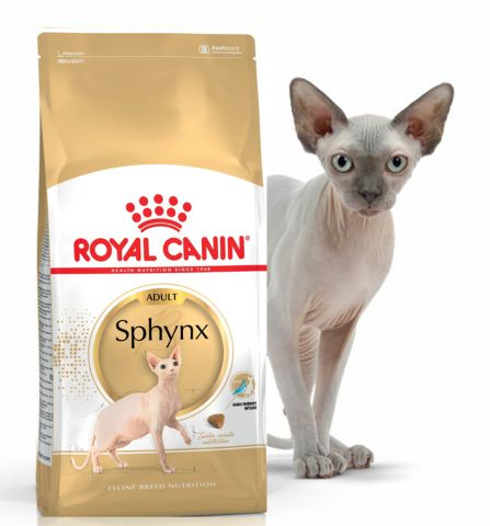 Формула Роял Канин для сфинксов отличается высокой калорийностью и содержанием жиров ( = 23%), сбалансированным содержанием протеинов (=33%). Добавление L-карнитина помогает  удовлетворить потребность сфинксов в энергии. Такое сочетание компонентов помогает поддерживать мышцы кошек, но при этом сводит к минимуму отложение жиров.